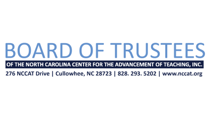 The NCCAT Board of Trustees will convene a meeting on Friday, October 24, 2025, at the NCCAT Ocracoke campus, located at 2 Irvin Garrish Highway, Ocracoke, NC 27960. The purpose of the meeting is to update the Board members on NCCAT’s progress.